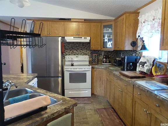 Escape to the tranquility of small-town life with this exceptionally maintained, 1,520 sq ft manufactured home, perfectly situated on a quiet, low-traffic bay and within easy walking distance to the local school. This residence is designed for comfort and modern living, featuring a spacious open-concept layout that seamlessly unites the living areas. The heart of the home is the fantastic kitchen, which is well-equipped for any cook and boasts a high-quality organization system with smooth-gliding drawer slides. Comfort is guaranteed year-round with a new 2024 air conditioner and the added value and convenience of an attached, fully insulated garage, providing secure parking and a functional workspace. Experience the peace of a close-knit community coupled with the easy flow and generous space of this move-in-ready home.
