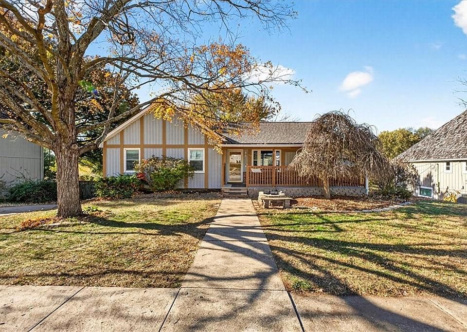 Welcome to this well-maintained 3-bedroom, 2-bath raised ranch! This home offers numerous updates and exceptional care throughout. Exterior improvements include newer siding and windows (10 years), roof (8 years), and two new doors leading to the deck. Mechanical updates include a furnace with 10-year warranty, 40-gallon water heater, HVAC (10 years), AC (10 year). The interior features vaulted ceilings in the living room with a gas fireplace, all-new flooring throughout the main level, fresh paint, and updated light fixtures. The kitchen includes a dishwasher (4 years old) and refrigerator (1 year old), along with Google Fiber for high-speed connectivity. Enjoy outdoor living on the large, freshly painted back deck or the spacious front porch, recently power washed. The finished walkout basement includes new flooring, laundry area, and access to the two-car garage located at the rear of the home. The property sits on an oversized, tree-lined lot featuring fruit-bearing trees, offering both shade and privacy. This home is truly move-in ready and combines comfort, quality, and modern updates throughout.