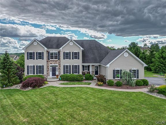 Resting In Highly Desirable Jacobsburg Manor Estates, Within Nazareth School District, Is A Stunning Grand Colonial Sitting On An Acre Lot. An entrance that features a grand two story foyer with a beautiful double turned staircase is a beauty. The open first floor features a large sunken family room with gorgeous majestic columns, large custom kitchen features gorgeous cabinetry, granite counters, large center island and a stunning dining area that features beautiful natural light, a must see. The office features double french doors and nice privacy. The dining room features nice hardwood floors, spacious living room, half bath and laundry room complete the first floor. The second floor features 4 bedrooms, all with en suite bathroom, making each bedroom a private sanctuary! The master bedroom suite features a gorgeous sitting room, stunning master bathroom and a massive walk in closet! Fully finished basement features three finished rooms, half bathroom, wet bar, two storage rooms and outside access. The professionally landscaped yard is very nice, features a multi tiered patio, great for entertaining! The gorgeous home delivers a 3 car garage, hardwood floors, 9 foot ceilings throughout, dual heating zones, gorgeous woodwork /molding, dual staircases and much much more! Schedule your grand tour today!