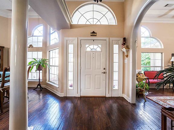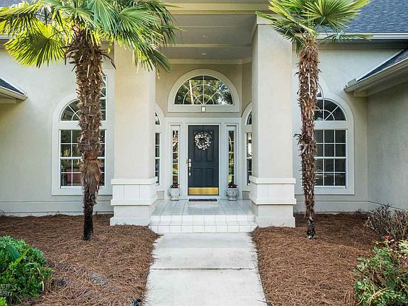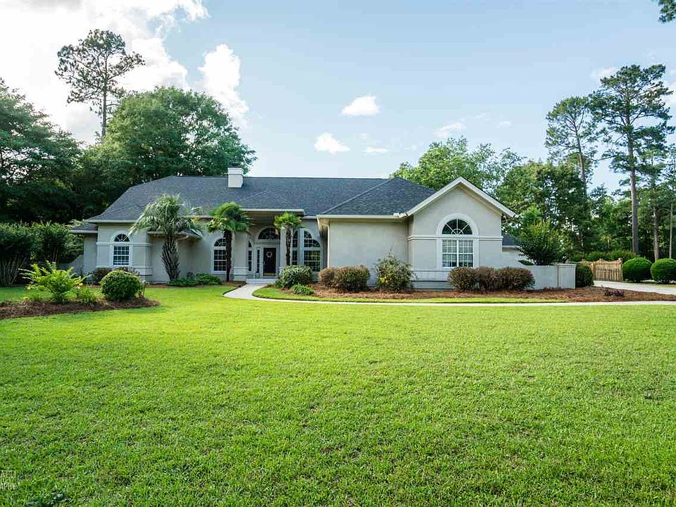 Incredible Light, Space and Value in this Mediterranean Beauty. Located in the golf course community of Stathams Landing, this home features a fantastic flowing floor plan. The kitchen provides an abundance of cabinet and counter spaces, and it overlooks the lushly landscaped backyard and porch areas. The covered back porch is perfect for your outdoor entertaining- it spans the length of the entire house. Gorgeous large lot with wonderful outdoor living spaces. Additional detached garage.