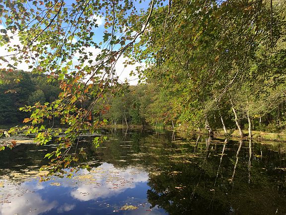 A majestic setting for this renovated home offering a blend of period details & finishes along w/ many modern conveniences. Upon passing thru the gate you will be transformed in to a storybook waterfront setting like no other. Over 9.4 acres w/ enticing views, walking trails & various gathering areas w/ a short walk over the babbling brook to the pool area. Gracious & bright interior w/ charming features thru-out, such as wide plank floors, antique beamed vaulted ceilings, 2 fireplaces w/ 1 having a beehive oven are just a few of the accents. A newer chef's kitchen opens up to the family room, library, & a sun-filled solarium w/ the picturesque lake in the background. The master suite w/ expansive windows allows you to appreciate the unmatched views of this exquisite property. The master bath is equipped w/ a classic antique claw foot tub & separate shower. 2 other bedrooms share an updated hall bath. Truly, a rare, private retreat in a great location, only an hours drive from NYC.