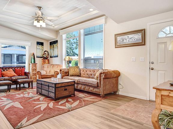 The Wine Country beckons! A very popular Mobile Home Park in North Napa. Nicely updated 2005 modular home with new flooring less than a year ago. Light and bright unit with welcoming porch equipped with a chair lift for easy mobility. The park has 2 pools, a putting green and generous lawn areas. Take a look and get comfortable with the environment. Many activities so you will easily get acquainted with the neighbors. Easy access to shopping and medical facilities and the main commute routes so family can come and visit. Pets are allowed. Come and see. You are not just buying a home, but becoming a part of a community.