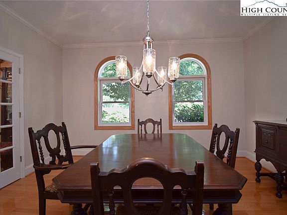 Custom, luxury home with a priceless location in the scenic & premier development, The Meadows located less than 2 minutes to downtown Boone and ASU! This grand 5 bedroom, 4.5 bath estate in a high-end community sits just above the heart of Boone. Spanning over 5.900 SF, the soaring ceilings and wall-to-wall windows. Kitchen and all baths recently renovated. The grand entryway with a sweeping staircase draws you into a voluminous layout made for entertaining. On the first level you will find an elegant formal dining room, tremendous chef's kitchen, den/family room with a wood burning stone fireplace, a large sunroom, multiple entrances to the expansive back deck, & a home office. The primary suite presents tongue & grove ceilings, a bright bay window, & an opulent ensuite bath with a soaking tub, separate glass shower, & his & hers vanities. The lower level houses a large rec room with fun checkered floors and a wet bar, billiards room, & a private living quarters with a full bathroom. Laundry is conveniently located on the main level. Park your car in one of the two oversized garages or use one as a workshop. Don't miss this property!