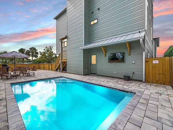 Investor's Dream: New Construction with $130K+ Projections - Live, play, and invest just 0.3 miles from the beach in this brand-new, fully furnished 4-bedroom, 3-bath plus 2 half-bath, three-story coastal retreat. Designed for both luxury and income potential, the home boasts a stunning third-floor entertainment terrace with a hot tub, billiard table, wet bar, Smart TV, and half bath, while outside you'll find a saltwater heated pool, fire pit, and outdoor TV for the ultimate vacation experience.