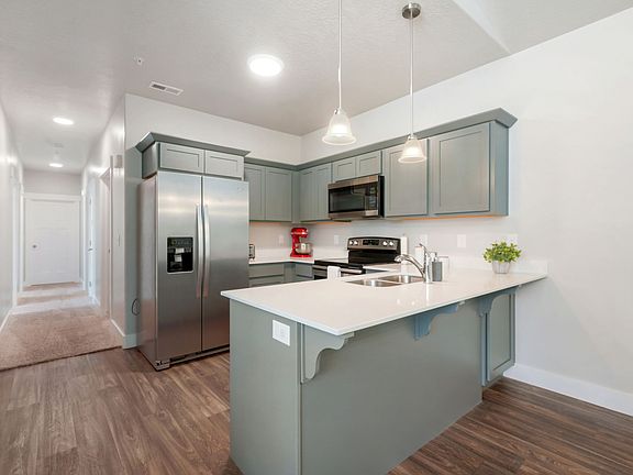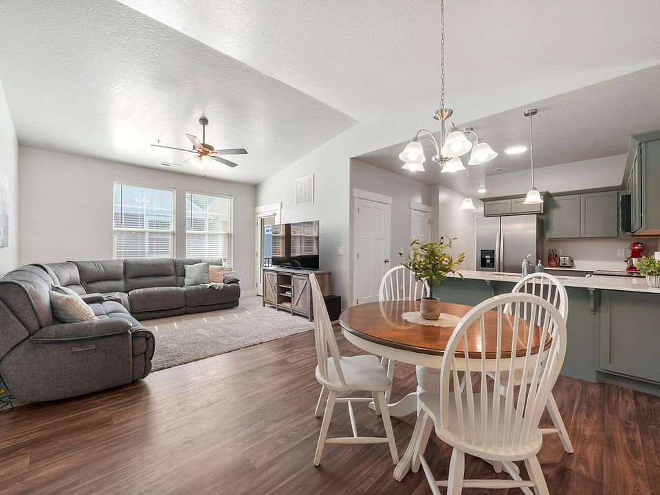 Live at the center of it all in this top-floor condo located in Vineyard's sought-after LakeFront community. Just steps from the Utah Lake Shoreline Trail, you'll enjoy daily walks or bike rides with panoramic lake and amazing mountain views, plus breathtaking sunsets from your own balcony. Surrounded by parks, splash pads, and trails, this area is designed for families and outdoor living - all just minutes away. Inside the community, enjoy access to a pool, clubhouse, fitness center, and sports courts, with beautifully maintained green spaces and playgrounds throughout. The home itself features vaulted ceilings, top-floor privacy, and a bright, open layout. You're also minutes from TopGolf, Megaplex Theatres, dining, shopping, I-15, and the FrontRunner - making this an unbeatable location for both lifestyle and long-term value. Whether you're a first-time buyer, investor, or looking for a family-friendly home near it all, this condo delivers the full package.