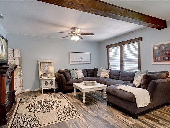 This 4 or 5 bedroom home with 2 large living areas is truly a country charmer within the city with a large metal fenced backyard. The kitchen includes portable wood block island that matches kitchen counters, extra large pantry and custom master closet opens with sliding barn doors, flooring is wood tile and some carpet. Laundry area is so large that it is currently the 5th bedroom. The large wood deck in the backyard is perfect for entertaining or for just relax time for the family. Located only 30 minutes from Fort Worth or Lockheed Martin and minutes to major highways is plus for the country farm style home with a very safe and private back yard.
