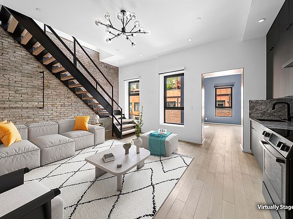 NEW PRICE! Available for Immediate Occupancy. A one of a kind Penthouse, completely sundrenched, and finished to the highest standard. This duplex layout features a stunning floorplan of over 1200 square feet total with extra large proportions. Step into the open kitchen, highlighted with imported stone counters and backsplash, Bosch gunmetal appliances and designer fixtures throughout. Distinctive style in both full bathrooms, with high end tile, exposed brick, and radiant heated floors. And the ultimate NYC amenity - TWO private rooftop decks with panoramic views. The building is a remarkable 8 unit conversion of a single family townhouse, in the heart of New York City. Featuring, video intercom, laundry facility, and "All Electric" home systems with no fossil fuel consumption whatsoever, for the entire building. A truly unique and impressive penthouse, and one you will not want to miss!