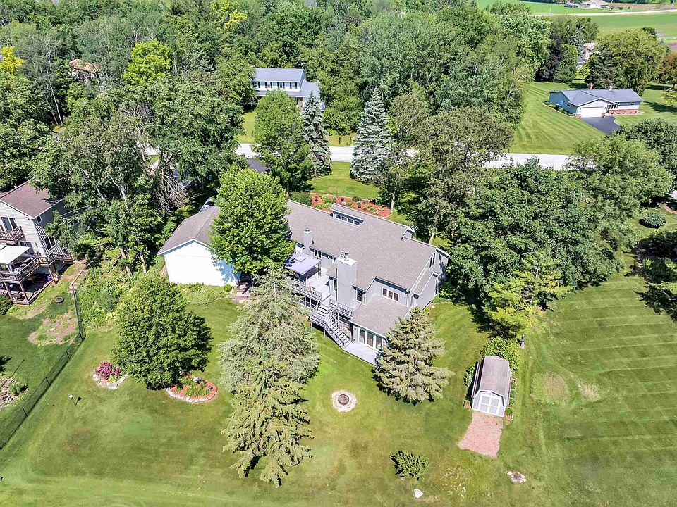 One story walk out ranch on Royal Scot Golf Course. Upper loft area with library and office. Spacious kitchen with plenty of cabinets, dining area with sliders to the oversized deck. Formal dining room, kitchen, and living room have cathedral ceilings. Lower level family room with a gas stove, 3 season room and two bedrooms. Extra detached 2 stall garage plus a yard shed. New driveway. Recently updated floors and siding. Please allow 48 hours for binding acceptance.