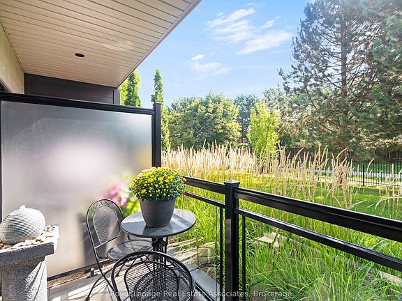This is Windows on the Green! A bright and spacious 2-bedroom, 2 full bathroom suite that backs onto the Glen Erin Trail for rare privacy and tranquility. This desirable main-floor suite is not your typical condo layout, features large windows, 9-foot ceilings, and a dining area walk-out to a private terrace with a gas BBQ hookup. The primary retreat comfortably fits a king-size bed and offers a private ensuite. Enjoy 2 side-by-side parking spaces, 2 lockers (1 standard + 1 executive), and convenient bike storage, perfect for exploring the endless nearby trails, parks, or walking your dog right from your doorstep. Located in the community of Erin Mills, steps to shopping, UTM, close to Credit Valley Hospital, GO Transit, and major highways. Resort-style amenities include underground visitor parking, a south-facing rooftop terrace, party room with bar & fireplace, a welcoming main floor lounge with flat screen TV, and a fully equipped exercise room. Just waiting for you!!!