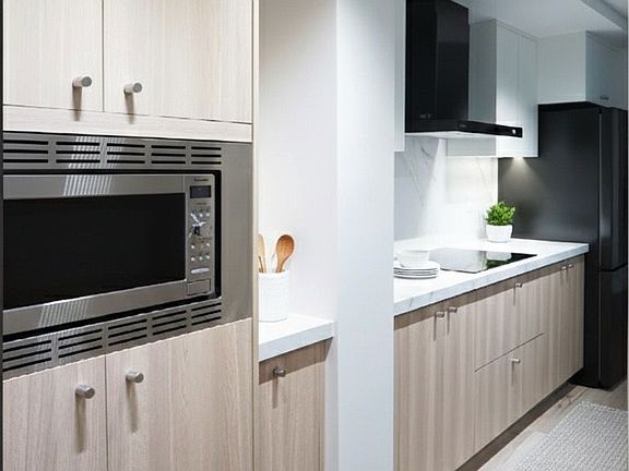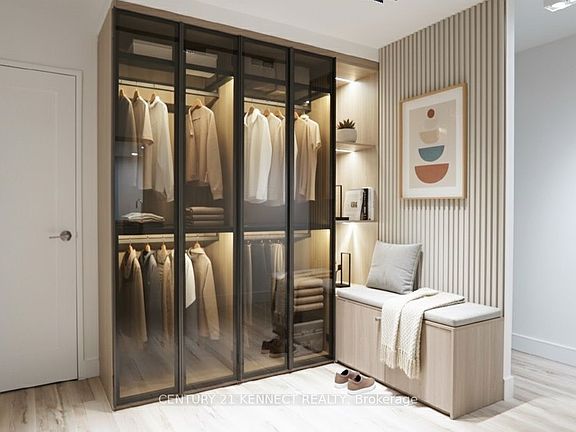 Breathtaking top-to-bottom designer reno in the heart of Mississauga! This stunning open-concept 3 Bed + Den, 2 Bath unit is a true turn-key home. The star is the brand-new custom kitchen, featuring sleek flat-panel cabinets, quartz counters, a matching backsplash, and a statement waterfall island. It's finished with new S/S appliances, pot lights, and modern track lighting. High-quality, wide-plank vinyl flooring flows seamlessly throughout, complemented by smooth ceilings and new baseboards. Storage is a highlight, with a custom smoked-glass wardrobe and a chic fluted wood accent wall. All-Inclusive Maintenance Fees! This is a rare find-your monthly fee covers Heat, Hydro, Water, Cable TV, AND WiFi. Budgeting has never been easier. Amenities include an outdoor pool, gym, and sauna. Perfectly located just a short walk from the GO Station and public transit. This is an incredible opportunity for a first-time buyer or investor. Don't miss out!