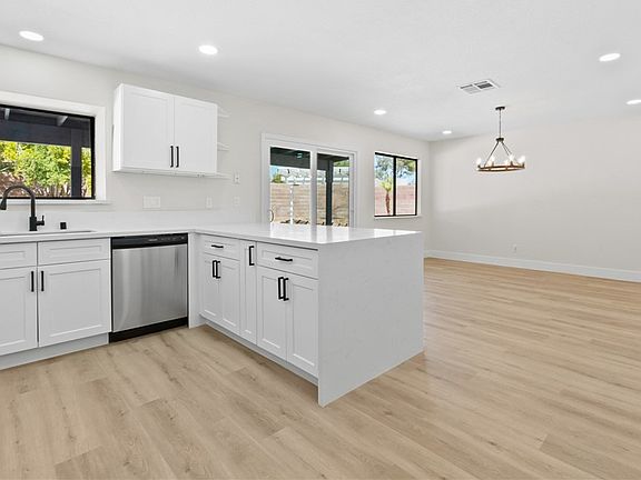 WELCOME TO THIS BEAUTIFULLY RENOVATED 4 BEDROOM, 2 BATH SINGLE-STORY HOME WITH A SPARKLING POOL AND SPA — NO HOA! INTERIOR FEATURES INCLUDE NEW PLUSH CARPET IN THE BEDROOMS, LUXURY VINYL PLANK FLOORING IN ALL MAIN AREAS, FRESH PAINT, AND UPGRADED LIGHTING THROUGHOUT. THE SPACIOUS KITCHEN OFFERS STONE COUNTERTOPS, WHITE SHAKER CABINETS, STAINLESS STEEL APPLIANCES, AND A LARGE PENINSULA PERFECT FOR ENTERTAINING. THE OVERSIZED PRIMARY SUITE IS SEPARATE FROM THE OTHER BEDROOMS AND INCLUDES A STUNNING WALK-IN SHOWER, MAKEUP VANITY, AND A GENEROUS WALK-IN CLOSET. SECONDARY BEDROOMS ARE WELL-SIZED WITH MIRRORED CLOSET DOORS. STEP OUTSIDE TO A BACKYARD OASIS WITH MATURE LANDSCAPING, COVERED PATIO, AND PLENTY OF SPACE TO UNWIND. CONVENIENTLY LOCATED NEAR GREAT SHOPPING, DINING, PARKS, AND MORE. MOVE-IN READY AND TRULY A MUST-SEE!