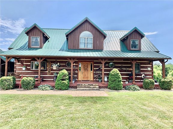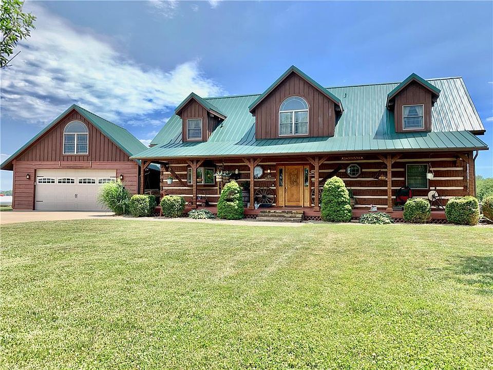 A remarkable home in the country! As you step onto the front porch of this log home you immediately see some of the many custom features this home has to offer. It has a standing seam metal roof, a cedar deck, hand carved entry door and Anderson windows. The inside features wide plank reclaimed oak flooring, spiral stairs to the 2nd floor with a Cypress tree at the center, a 20' tall stone fireplace, Knotty Alder six panel doors and trim as well as custom light fixtures inside and out. There's a 12' X 13' Screened porch off of the dining room, a 12' X 13' covered porch off of the Master bedroom, a 12' X 13' covered patio in the back yard off of the rec room & a patio constructed from stamped concrete with a fire pit in the center for entertaining. 40' X 40' Barn. MUCH MORE!