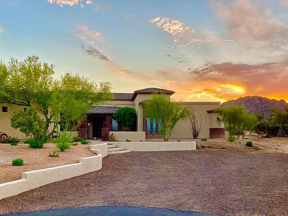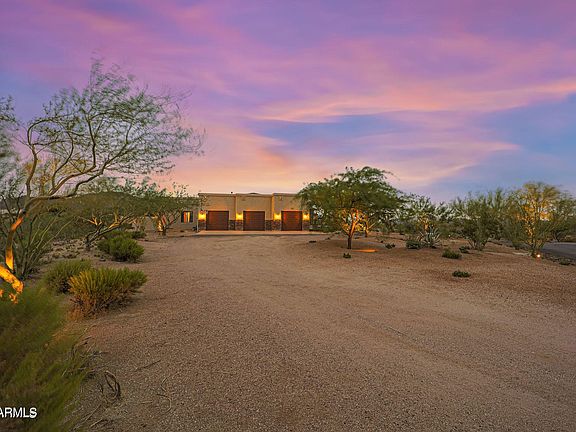 Secluded 3,000+ sq. ft. custom home on 1.99+/-acres in Northern Scottsdale's stunning desert. Majestic mountain views, chef's kitchen with Sub-Zero and Wolf appliances. Open resort-style backyard with pool, waterfalls, fireplace, BBQ, and large patio for unforgettable sunsets. No HOA or CCRs—enjoy freedom in a quiet cul-de-sac near Granite Mountain, with RV parking (50-amp hookup), medical-grade air filtration, and space for horses or a casita. Your Arizona dream starts here—tour now!