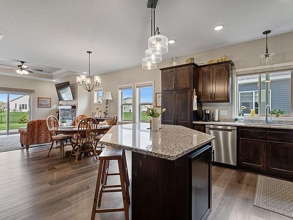 2021 Built One Level Living at it's BEST! Only available due to sellers moving back out of state. Hurry, this 3 bedroom, 2 bath detached won't last long. Master Suite offers 10x5 walk in closet, double sink bath vanity, beautiful tiled walk in shower w/glass door. Other home features: In-Floor Radiant Heating, Ductless Mini Splits in each bedroom & main living area (adjust your rooms for comfort), Stone fireplace with Mantle (TV & Surround Sound System stays), granite counter tops, Upgraded LV Flooring throughout main area of home (Bedrooms have carpet), 9ft knockdown ceilings throughout, upgraded recessed ceilings in living room and master suite add a nice elegant touch, Custom Knotty Alder cabinet with pull out draws, Kitchen SS Appliances, 2 car insulated, sheet rocked, painted garage with ladder & storage trusses, rain gutters, irragtion system w/separate water meter, newly planted evergreen black hill spruces along back yard lot line, Huge lot! This is a perfect 10 MUST SEE!
