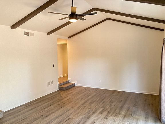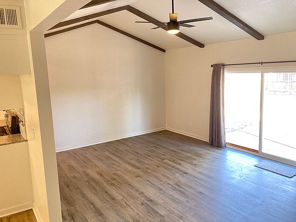Centrally located, this home affords great transportation to anywhere. Four Bedrooms and a vaulted ceiling great room provide a family atmosphere of community with privacy. Freshly painted with all new flooring and upgraded dual pain high efficiency windows all throughout. A 2 car garage with opener, possible garage refrigerator/freezer, and a number of built shelving racks gives ample room for indoor storage. Garage electric washer and dryer hookups with laundry sink. The backyard is spacious with a mature shade tree, lemon tree, and orange tree with the sound of flowing water from the nearby canal to calm your busy day's activity. A possible gas line for your natural gas BBQ awaits and a side run for a possible garden, pet, or play yard is separated by smaller fence and gate.
