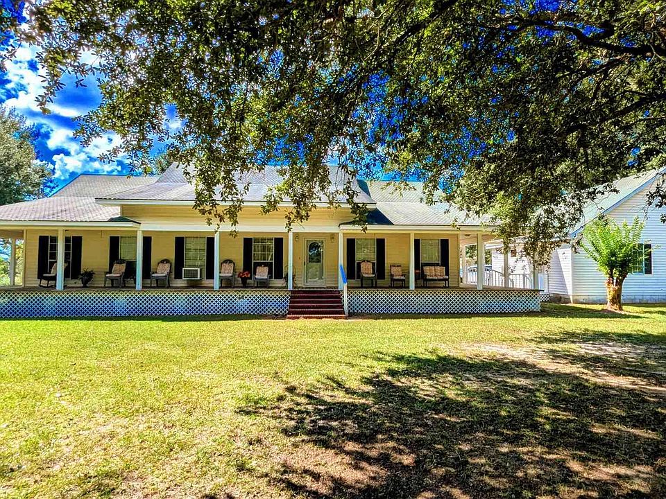 **Ultimate Country Living!!** Welcome to this captivating 1.5-story haven, nestled on 2 lush, private acres of tranquility. This isn't just a house; it's a dream come true, featuring an impressive 5 spacious bedrooms and 2 full baths, where every corner radiates warmth and charm. As you step inside, you're greeted by a grand living room that exudes elegance, boasting a soaring 15-foot vaulted ceilings that creates an airy, open atmosphere complete with a cozy fireplace. The expansive kitchen is an entertainer's & chefs dream, featuring plenty of cabinetry, countertop space & a massive, inviting bar that beckons for lively gatherings making every meal a celebration! On the main level, 3 generously sized bedrooms await, including the luxurious primary suite. This sanctuary is a true retreat, featuring a spa-like ensuite bath that boasts a spacious walk-in shower and a stylish double sink vanity—your personal oasis for relaxation. Venture upstairs to discover 2 additional impressive bedrooms, ideal for guests or members seeking their own slice of serenity. Step outside and be captivated by the picturesque wraparound porch, where breathtaking views of a serene wooded wonderland unfolds before you with majestic oaks, towering pines, and vibrant blueberry & scuppernong vines.And let's not forget the superbly spacious detached two-car garage, offering invaluable storage spaces and plenty of room for vehicles, hobbies or projects. This isn't just a property; it's an irresistible lifestyle opportunity waiting for you to seize! Whether you envision hosting unforgettable gatherings, enjoying peaceful country living , or simply basking in the beauty of nature, this extraordinary home has it all! You'll say "WOW!" the moment you set foot on this property! Don't let this gem slip away! Embrace the excitement of country living and make this enchanting escape your very own! Call and schedule your private tour TODAY! Buyer to verify all information during due diligence.