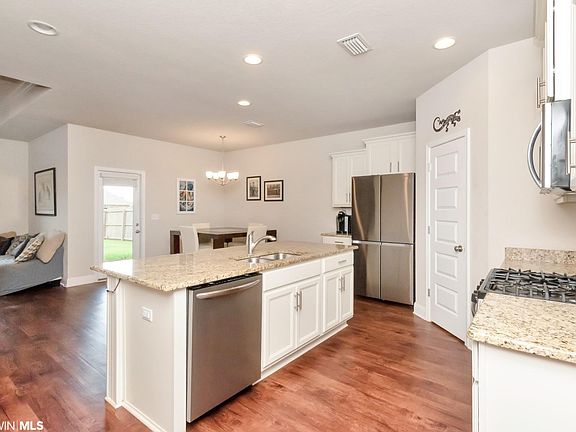 Welcome to this impressive residence at 31711 Kestrel Loop, nestled in the charming subdivision of Stonebridge. This home is situated in sought-after Spanish Fort, and is conveniently close to shopping, dining, and access to I-10, making commuting a breeze. With 4 bedrooms and 2 bathrooms, this home has options to fit almost any need. Each room is beautifully designed and offers ample space to enjoy. The main bedroom is separate from the guest bedrooms and has a beautiful en suite bathroom with soaking tub, separate shower, double sink vanity and huge closet. The kitchen showcases granite countertops, modern appliances, a large pantry and a central island. It's a culinary enthusiast's dream and an ideal spot for gatherings. Both the living room and the fully fenced backyard are perfect for hosting gatherings. The living room is expansive and welcoming, while the backyard is tailor-made for barbecues and outdoor activities. The fortified roof, tankless hot water heater and HVAC unit are 7 years old per seller. This home also has detachable hurricane shutters and a smart home alarm system. As a homeowner in Stonebridge you will have access to the neighborhood resort style pool, clubhouse, playground, tennis & basketball courts and fitness room. This is the perfect chance to own an exceptional property in Spanish Fort. Don't miss out on the opportunity to make this house your own! Contact your favorite realtor today to arrange a viewing.