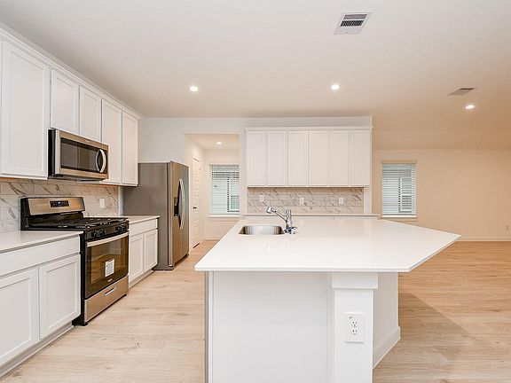 Plush carpetHigh ceilingsStainless steel appliancesGorgeous quartz countersCovered patioHuge islandHuge walk in closet