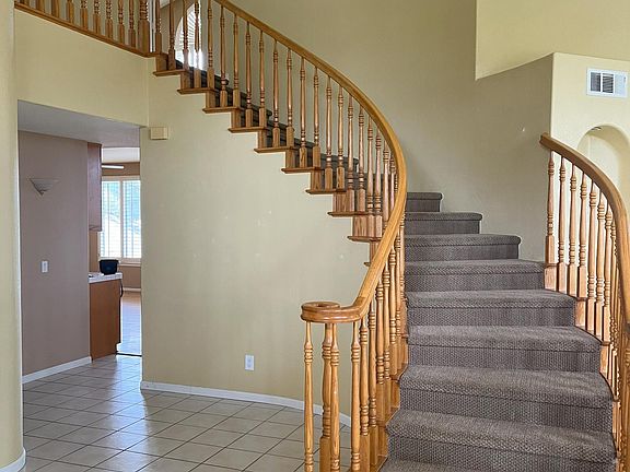 Sophisticated home! 5 Bedrooms, 3 Baths, gourmet eat-in kitchen, formal dining room and living room, curved stairway in entry, wet bar, 3 car garage, huge master suite with balcony, 2 walk-in closets, wonderful master bath, very large bedroom upstairs, could be 2nd master, full bedroom and bath downstairs. Plantation shutters throughout.