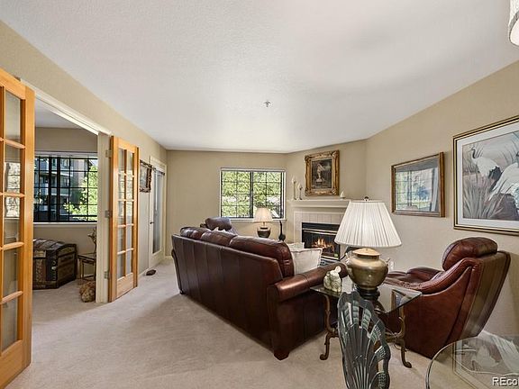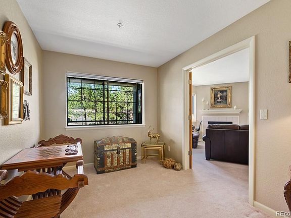 Very well maintained, sunny and bright! This well-designed kitchen comes with white cabinets and appliances, tons of counter space and also allows you ample space for a table. There is a dining area as well, affording you 2 spaces for meals or enjoy one large living area with gas log fireplace and the views of the grounds just beyond. Off of the living area you can also enjoy the mornings and evenings on you covered deck/balcony. The office (or 2nd bedroom) is a versatile space for your den, hobbies or guests. The large master suite can easily fit your king-sized bed, with walk in closet and the private master bathroom is just beyond. The guest bathroom features a walk-in shower and laundry. This coveted 55+ community offers community rooms, library, exercise room, billiard room, Art and work shop and Guest Suite if needed. Awesome location within walking distance to King Soopers, Natural Grocers, restaurants, shopping, parks and trails, Buchanan Recreation Center and more. Newer carpet and paint. 3 STORAGE UNITS