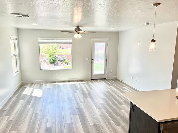 Built at the end of 2021 and well taken care of, this home offers a main-level primary suite with laundry in the closet, a bonus living room upstairs, and an additional upstairs laundry room. Washer and dryer units are included in both the main-level primary suite and the upstairs laundry room. The home comes with all major appliances, including refrigerator, stove, dishwasher, and microwave, plus central air and heat, stainless steel finishes, and plenty of storage. The yard backs up to a community park, with all yard maintenance handled by the HOA. The property is on Dixie Power and Desert Canyons Elementary is just around the corner. There are also plenty of hiking, biking, and walking trails nearby to enjoy the great outdoors.