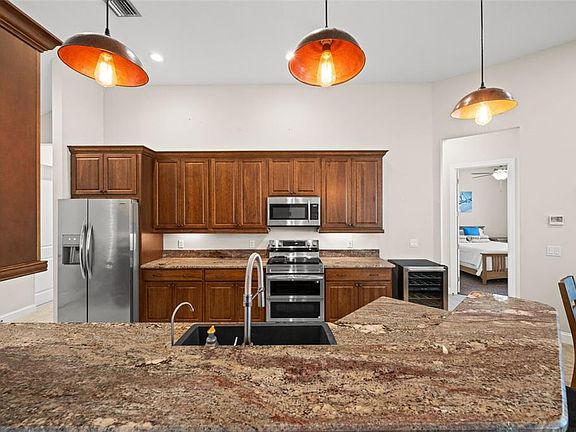 This beautifully maintained 2016 home offers the perfect blend of quality construction, comfort and true Florida living. Designed for long-term peace of mind, the property features impact-rated doors and windows, a 2022 A/C system, a 2016 water heater, water softener, irrigation system, six-inch gutters and an oversized garage equipped with its own air-conditioned and heated mini-split system. Outdoor living is exceptional with a caged saltwater heated pool, a pavered deck, a fenced yard, lush landscaping and a 10' × 12' shed for extra storage. The home sits on a private setting with wooded lots on both sides (available for purchase with a separate contract) and Myakka State Forest directly across the street, offering unmatched serenity. Inside, you’ll enjoy high ceilings, pool bath access, a large pantry and a separate laundry room with additional cabinets, a closet and the washer and dryer included. The kitchen is equipped with professional-series appliances, a reverse osmosis water filter, a wine fridge and both under- and over-cabinet lighting. Additional interior upgrades include plantation shutters, custom closets and custom ceiling fans throughout. The furnishings are optional and the exterior has just been painted. As part of the optional Gulf Cove HOA, residents enjoy access to a waterfront park on the scenic Myakka River complete with a private boat launch for members. Nestled between a State Forest and a State River—and just 10 miles from Englewood Beach—this home offers a serene and convenient coastal lifestyle. If you’re searching for a top-of-the-line home in a quiet, natural community, your search ends here. Schedule your showing today!