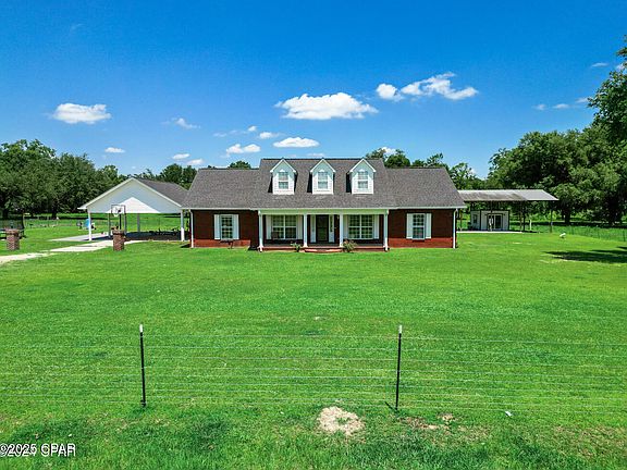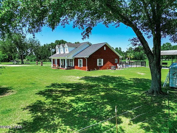 This one is a must-see because pictures simply can't do justice for this beautiful homestead in rural Jackson County Florida. The 20-acre fenced property affords plenty of space for a multitude of outdoor activities with ample room left for raising livestock. Three separate pole barns mean there are plenty of storage options for farm equipment, recreational vehicles, and anything else you'd like to protect from the elements. Two wells and two RV hook ups have been thoughtfully installed and one of the barns offers an enclosed 12x12 heated and cooled space that could serve as an office or a climate controlled storage unit. An in-ground pool is a great place to relax and cool off after a long day and there happens to be one of those on this property too! All of that and we haven't even talked about the almost 3 bedroom 2 full bath custom brick home that was built in 2008. The open concept vaulted ceiling living space invites visitors to cozy up by the gas fireplace and is flanked on one side by the master suite and the other by two bedrooms and a full bath. A 529 sq ft space off of the kitchen offers flexibility. Use it as a great room, a play room, a home gym, or a home school. This place is rural, but not remote. You can access shopping, schools, and parks in Marianna in about 20 minutes, world class fishing on Lake Seminole in about 15 minutes, or the emerald coast of Mexico Beach in just an hour and a half. There's not much more you can dream of. Schedule a tour today! All measurements should be verified if important.