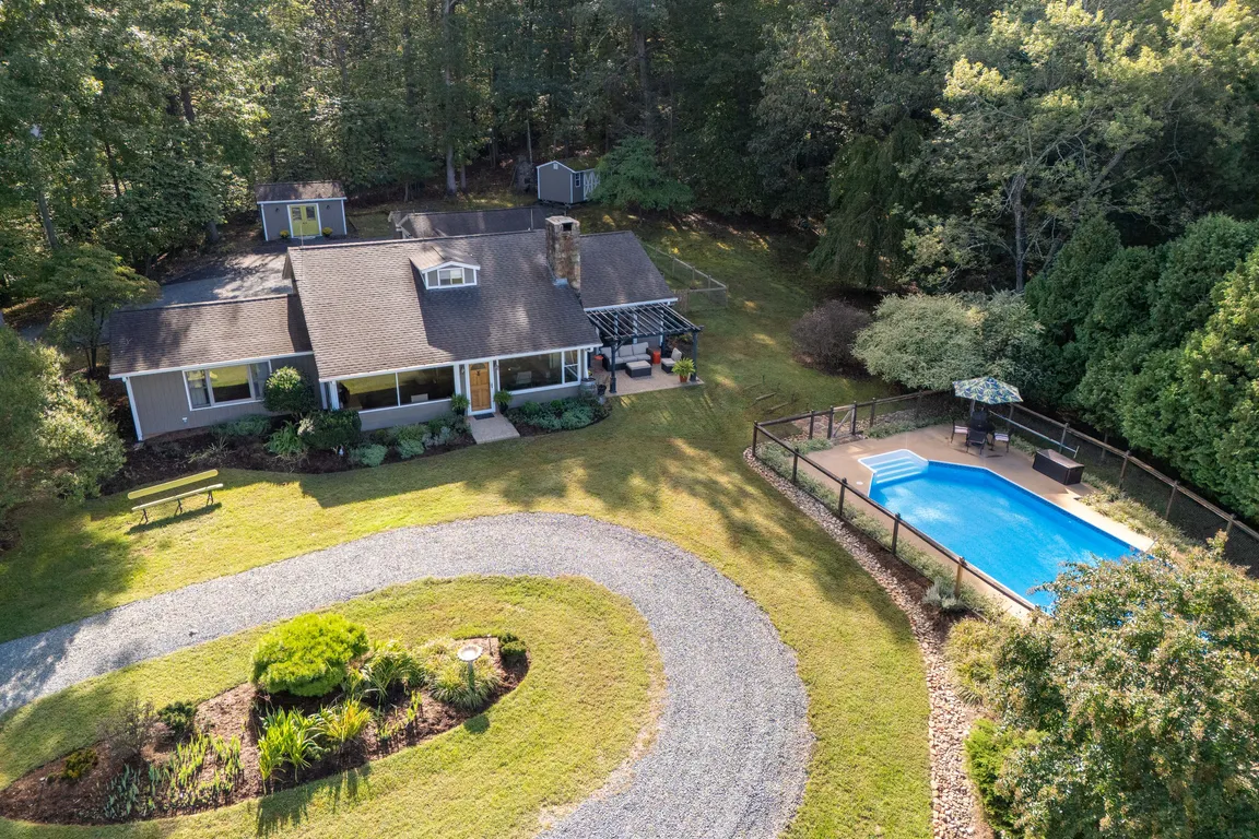 Home officeSparkling in-ground poolPrivate oasisCovered patioComfortable single-level livingLight-filled layoutMudroom entrance