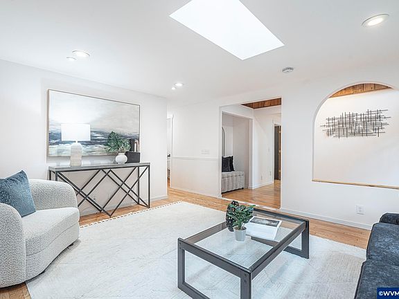 Single-level retreat on nearly an acre, tucked in the trees just 5 min to downtown Philomath and 20 min to OSU. Updated throughout with fresh paint and trim, kitchen updates with brand-new appliances, and an open kitchen/dining layout. Large windows frame the forest, and a spacious deck overlooks the large, private yard - ideal for relaxing, gardening, or play. Quiet, private setting with the convenience of town close by. Room for chickens, RV parking, or a dream garden - your lifestyle fits here. Call now!