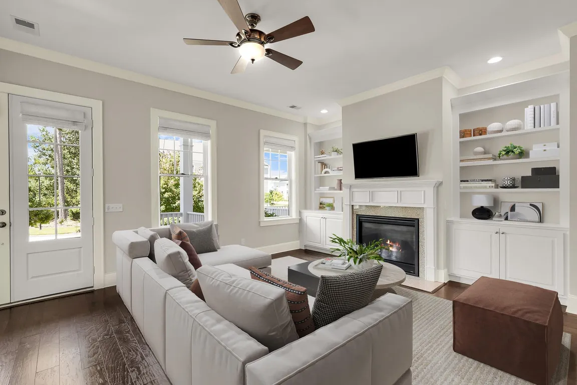 Welcome to this 3-bed, 3.5-bath townhome in gated Dunes West. Enjoy an open-concept layout filled with natural light, classic built-ins, & a fireplace in the living room. The space flows into a dining area & kitchen with a large island for entertaining & a custom-built hutch for added storage and charm. ...