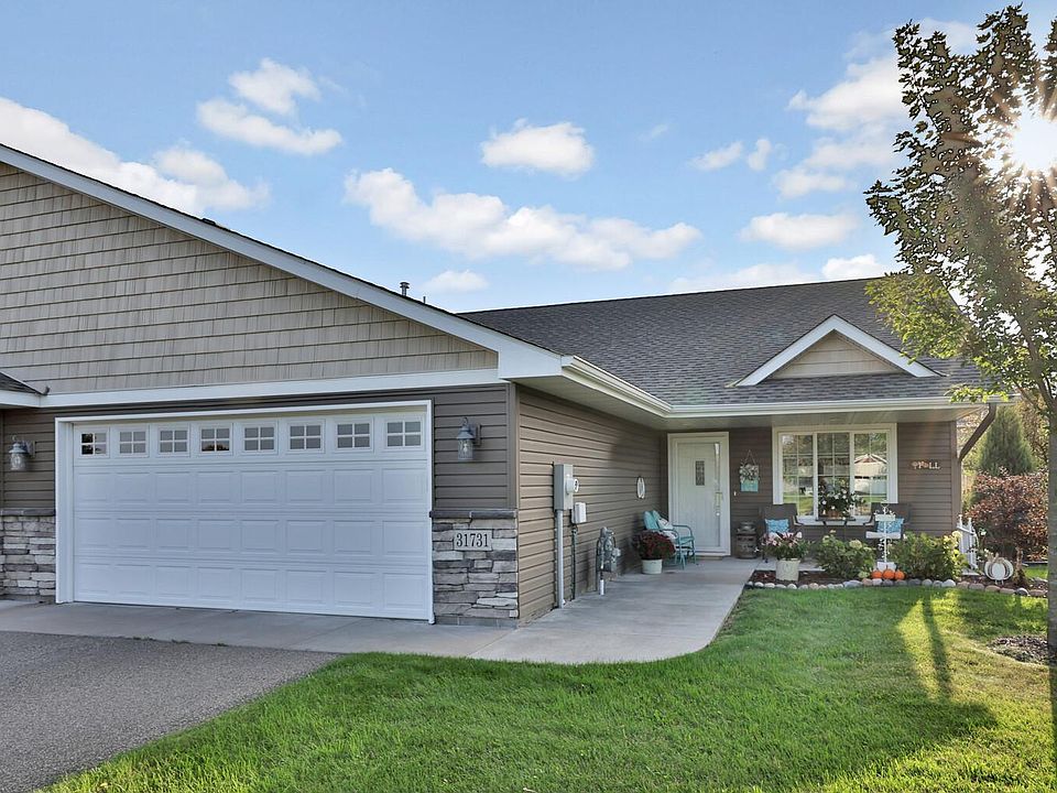 Immaculate and well-loved, this stylishly updated home is perfectly situated in the heart of Lindstrom. Featuring 2 bedrooms and 2 baths, this true one-level home makes downsizing a dream - you'll still enjoy your gardens and lawn without the burden of association fees.