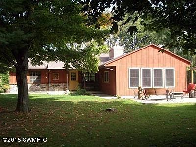 For details and more pictures, call listing Agent: Shelly Myers-Henry at (269) 782-2877 or http://cressyeverett.com/15001713 The warmth of wood surrounds this 20 acre ranch home. This 3 bedroom 2 bath home is completely remodeled with a rustic beauty. Solid wood floors, 2 fireplaces, open floor plan, and plenty of light from the insulated windows. Granite counters, updated appliances and French doors make this kitchen unforgettable. Extra living space in the lower level also has a cozy feeling with a separate fire place. Enjoy overlooking the 20 acres from either of 2 decks. This property also has a large 48x48 pole barn with 14ft door, 4 car garage, and wood shed. This is a must see to appreciate all this home has to offer.