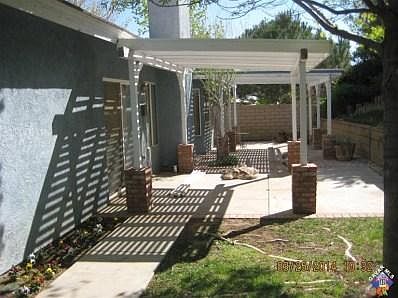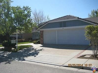 Rancho Vista area. Features used brick accents and front porch area. Very clean 4 bedroom with formal living room with attached dining area, family room with Fireplace with wood burning insert adjoins breakfast nook and open kitchen. Carpet less than 2 years old and looks like new. Nicely landscaped front and rear with large covered patio with door from nook and slider from master bedroom. Master bath has double sinks and seperate garden tub and shower with walk in closet. Spacious 3 car garage with build in workbench area.