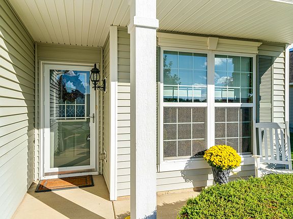 BEAUTIFULLY MAINTAINED WYLDWOOD MODEL IN GRAND DOMINION'S HIGHLY SOUGHT-AFTER 55+ COMMUNITY, WHERE AN ACTIVE LIFESTYLE MEETS LOW-MAINTENANCE LIVING, BACKING TO SCENIC OPEN FIELDS! From the moment you arrive, the inviting front porch sets the tone for this charming home, perfect for morning coffee or friendly chats with neighbors. Head inside to discover an airy open-concept design that seamlessly connects the living and dining areas, creating an ideal space for both entertaining and relaxing. Through a set of French doors, a versatile den offers endless possibilities. Create a quiet home office, a cozy reading nook, or even convert it into an extra bedroom for guests. The kitchen is thoughtfully designed with 42" crowned cabinetry, generous counter space, a closet pantry, and quality appliances. A center island doubles as a convenient spot to meal prep or gather for a quick bite, while the adjoining great room invites conversation and connection. Continue into the sunroom, where natural light fills the room and a slider opens to a private patio, ideal for summer cookouts, soaking up the sunshine, or simply unwinding after a full day of activities. The main bedroom suite is complete with a large bayed window, a walk-in closet, and an ensuite bath featuring a dual-sink vanity and a separate shower. A second bedroom and full bath ensure comfortable accommodations for visiting family or friends. The 2.5-car garage completes the home, offering ample space for both vehicles and extra storage.. Beyond your doorstep, Grand Dominion offers a vibrant lifestyle with resort-style amenities. The Lakeside Lodge serves as the community hub, featuring a welcoming grand lobby, a state-of-the-art fitness center, and an indoor pool. Head outside to enjoy tennis and bocce ball courts, tranquil paths, and scenic pond views. During the warmer months, the outdoor pool and sundeck provide the perfect place to relax and socialize. Ideally located near shopping, golf courses, and major roadways, this home offers the perfect blend of comfort, convenience, and community, all in a setting designed for easy, enjoyable living.