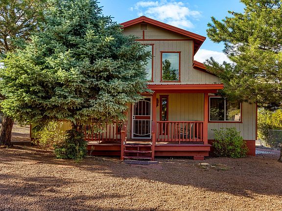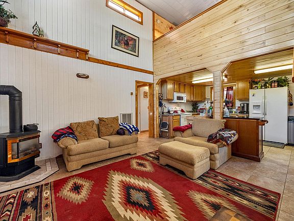 Super sweet describes this site built 2BR, 1BA home with large loft which can be used as 3rd BR with pony - privacy wall. T&G upstairs and kitchen and dining room are T&G. Living room has vaulted ceiling and upper windows let the sunlight in. Open floorplan too! Relax on the covered front deck, back deck or huge balcony. This ½ acre lot is completely chain link fenced and setup for year-round with metal roof, paved road, oversized 2 car garage and dual pane windows. There's electric wall heat and freestanding gas stove in the living room. Privacy galore as it backs national forest too!