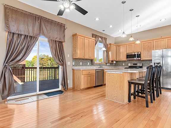 You will love this North Lindstrom beautifully crafted immaculately maintained 5 bed, 3 bath, 3 car home! This home features: 10 foot ceilings on main level,recessed lighting,Hunter ceiling fans, hardwood flooring, carpet, ceramic tile, 7 foot kitchen island, built in hutch / bar, solid core wood doors, gas fireplace, Frigidaire Gallery stainless steel appliances, LG washer and dryer, fully finished lower level Other feature include a 20'X12' deck with composite decking, workshop 13'X24' which is part of the lower level floor plan and opens up into the backyard with a garage door and irrigation system. There is plenty of storage in this home.