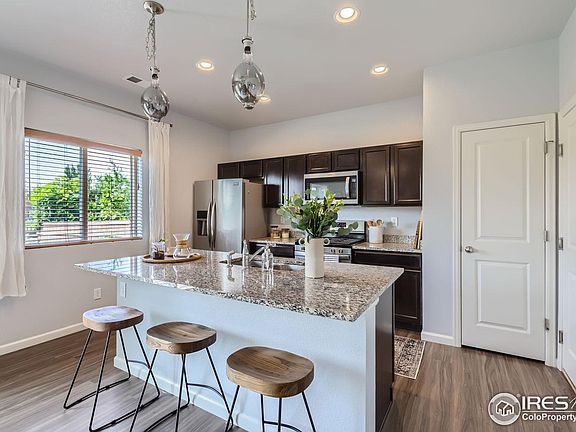 Great location at a great price! Room for everyone with a bright open floor plan and bonus loft area for second living quarters. The kitchen boasts granite counter tops, large island, and pantry storage. A spacious main bedroom has walk in shower, granite dual vanity, private water closet and huge bright walk-in closet. Convenient second floor laundry with washer and dryer included! The large back yard with raised beds and over sized patio are just waiting for the outdoor entertainer. Close to everything- schools, shopping, restaurants, Centerra, Loveland Sports Park and more!