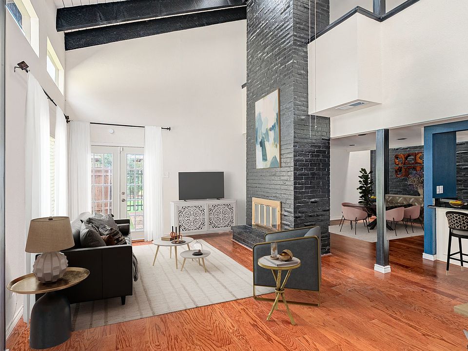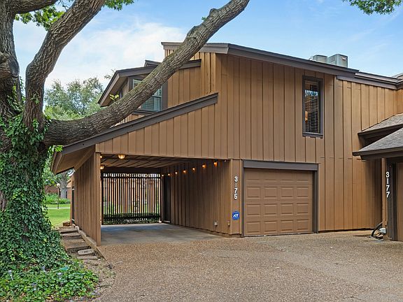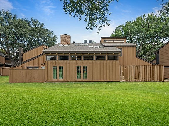 This beautiful townhome has been so adored & loved, and you will too! Stunningly updated CORNER UNIT overlooks the gorgeous GREENBELT, and features 3 bedrooms, 2.1 baths, 2 living areas, 1 garage & 1 carport. Located in a vibrant North Dallas community with two pools, clubhouse, and walking trail. Bright and airy interior has a soaring ceiling with wood-beams, skylights, gleaming WOOD FLOORING, redone bathrooms, designer touches throughout, and a cozy two-sided fireplace between the living & dining rooms. The renovated kitchen offers GRANITE COUNTERTOPS, white cabinetry, stainless steel appliances, and a breakfast bar. Main-level owner's retreat, and two secondary bedrooms upstairs plus a GAME ROOM and cheerful SUNROOM. Relax outside on the two low-maintenance rock and turf courtyards. Recent updates include fresh paint, new HVAC, new dishwasher and fridge, and a new fence. Close to Brookhaven Country Club with golf, tennis, fitness, swimming pools and more. Easy access to the Dallas Tollway, I-35, I-635, & I-190!