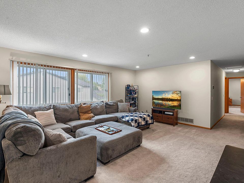 Step inside this sparkling clean end unit townhome filled with thoughtful updates and cozy charm. This is located in a highly desirable South White Bear Location. Recently refreshed with neutral paint tones, plush carpet, durable kitchen LVP flooring, updated cabinet hardware, countertops, sink, faucet, and dishwasher. The bathroom shines with updated fixtures and a modern shower stall.