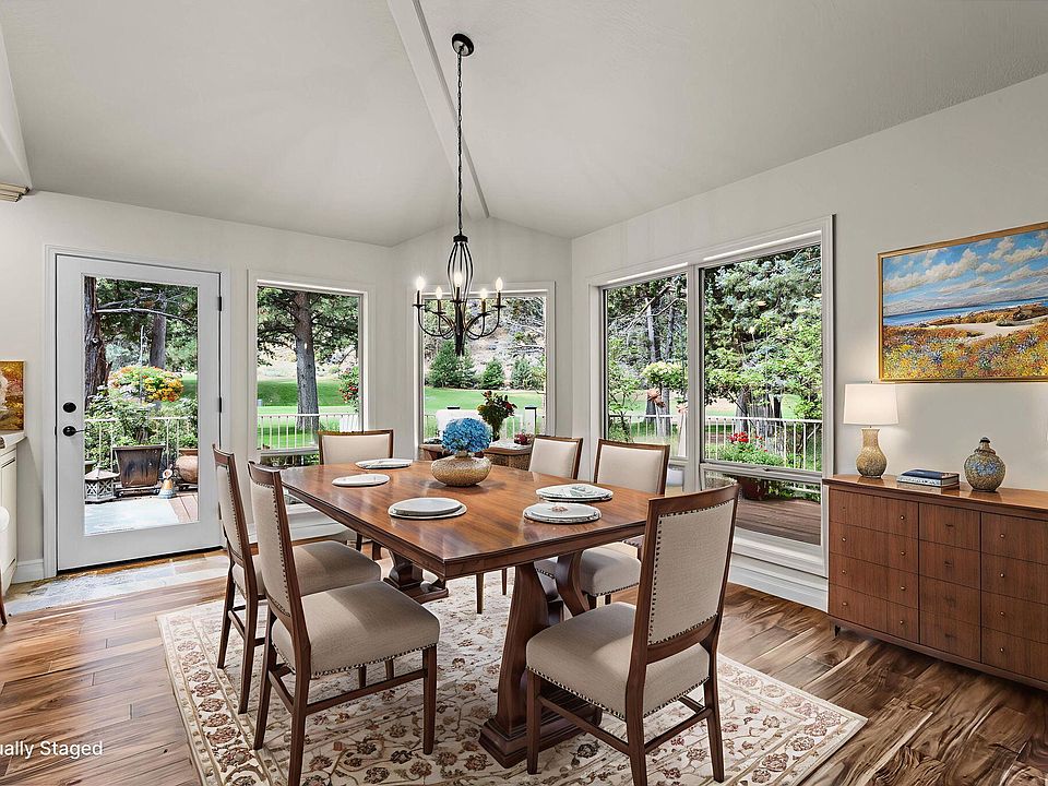 Show-stopping islandRefined finishesUpdated homeOversized wraparound deckVaulted ceilingsWall of windowsMature ponderosa pines