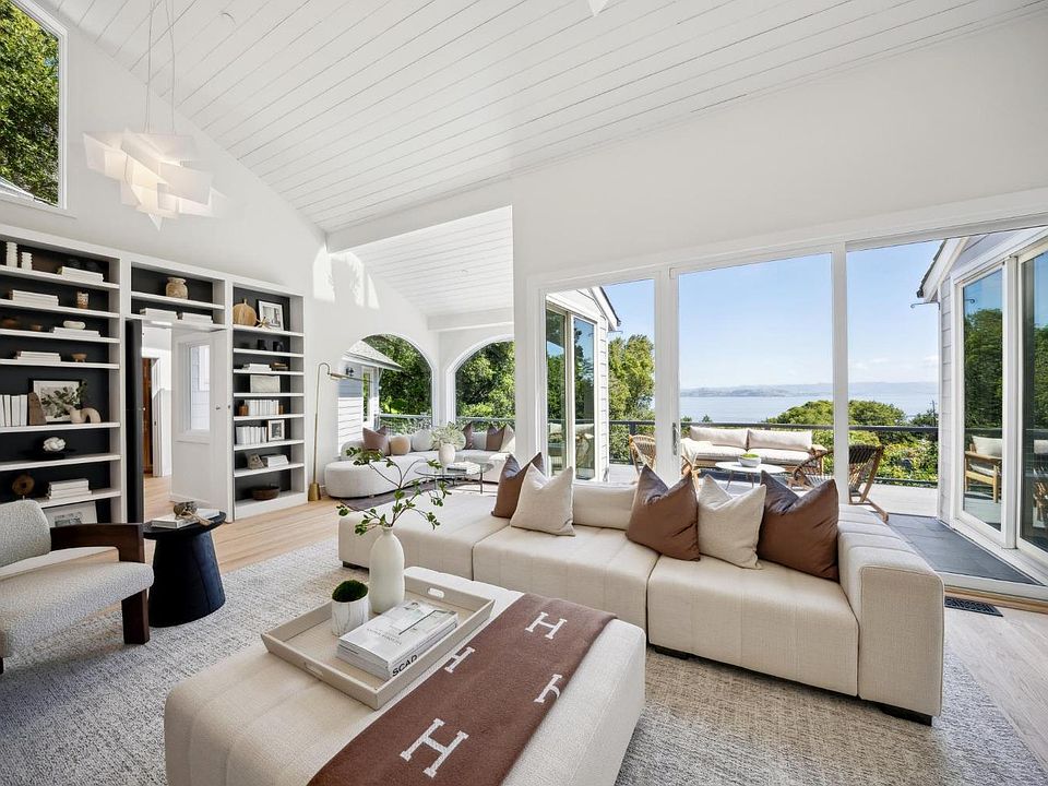 Poised on over 1.5 acres of elevated serenity, this exceptional retreat offers panoramic views of the Bay and an unparalleled sense of tranquility. Set back from the street, it unfolds like a well-kept secretinviting, graceful, and inspired by nature. This fully-renovated single-level home is designed to immerse oneself in the beauty of their surroundings. Walls of glass frame mesmerizing views of the Bay and garden from every room, while vaulted, wood-beamed ceilings and beautiful oak flooring create a warm and inviting atmosphere. The heart of the home is the gourmet kitchen. With bay views on one side and a sparkling pool and lush gardens on the other, every meal and moment is infused with beauty. The double living room is a tranquil retreat, flowing seamlessly to an expansive deck, where golden sunsets paint the sky in breathtaking hues, making it the perfect spot to relax after a busy day. Outside, a private cottage awaitsideal for guests or home office. Thoughtfully designed and renovated with its own luxe bath and kitchen, it enjoys total privacy with Bay views. Minutes from downtown Tiburon and part of the coveted Reed School District, this home is more than a retreatit's a dream come true. Welcome to Paradise!