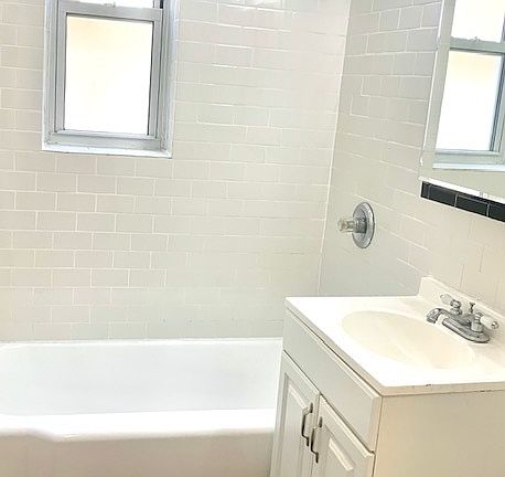 Large 1 bedroom with eat in kitchen, full size bedroom, full bathroom with bathtub, Dishwasher. Hardwood floors throughout, Excellent closet space. 1 Month's Brokerage fee due upon approval.
