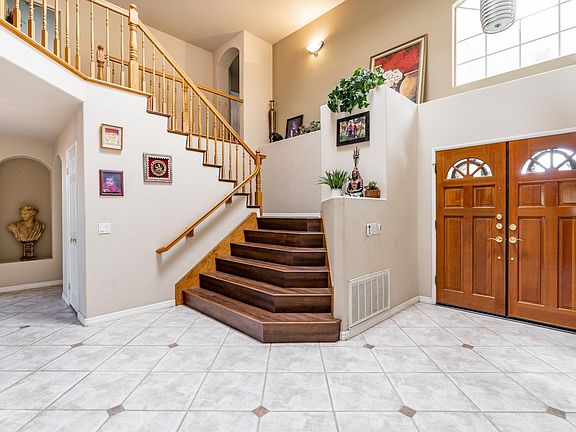 This gorgeous 6 bedroom home sits on a quiet cul-de-sac and boasts 3,505 sq ft. just doors away from Serena Hills Park. Beautiful courtyard greets you to the inviting entryway brightly lit with coffered ceilings embracing the large skylight. Formal living and dining rooms are spacious with a fireplace, vaulted ceilings and double stack windows offering plenty of natural light. Family room and breakfast nook have their own double sided fireplace. Lower level grants a bedroom overlooking the courtyard with its own adjacent bath. Across the foyer is a separate mini-master suite with French doors allowing access to its private deck and butterfly garden. Upstairs provides 3 generous bedrooms with plenty of storage and a full bath with double sinks. Accenting the master entry is the study nook with plenty of upper and lower storage. Entering the master you are welcomed by the cozy retreat with its private balcony and fireplace. Ensuite is considerable in size along with its separate soaker tub, oversized shower and spacious walk in closet. Backyard is an entertainers delight featuring multiple fruit trees, rose garden and gorgeous greenery. Split level layout has made great use of this space with arbors, awnings, putting green and fire pit. Garage has plenty of storage space. Location is close to wineries, shops and schools.