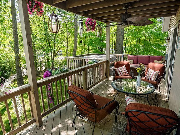 Large 4 bedroom, 4 bath home on wooded lot with views of Magician Lake. Very open layout featuring large great room with cathedral ceilings, fireplace, open staircase and a loft overlooking it. The loft offers it's own private deck overlooking the lake. All bedrooms are large. The basement has 9' ceilings and a second stairway to the garage. Large deck areas with lake views and hot tub. Oversized 2-car garage and a 20x30 pole barn for all of your storage needs. The kitchen is open to the living room and dining area and features quality cabinets, solid surface counters, and a nice appliance package. Newer roofing and New high efficiency furnace and air in 2023. Million dollar views without the million dollar price!