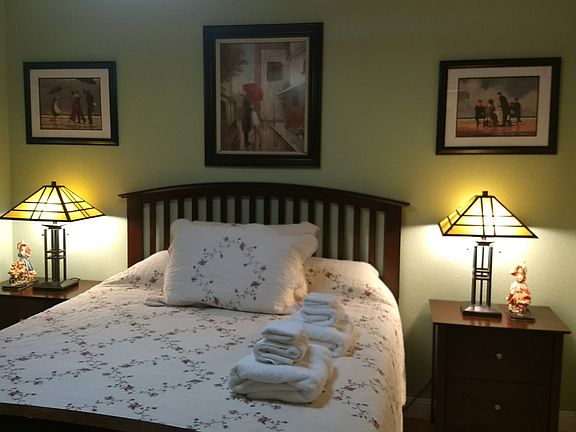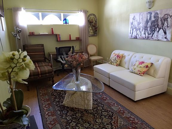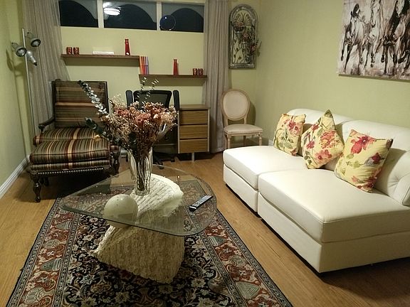 This single-occupancy furnished suite includes a medium-sized living room, a smaller kitchen, a large, beautiful, and comfortable bedroom, and a large bathroom. It apartment is in an upscale and highly desirable neighborhood. The suite has its own private entrance and parking space.