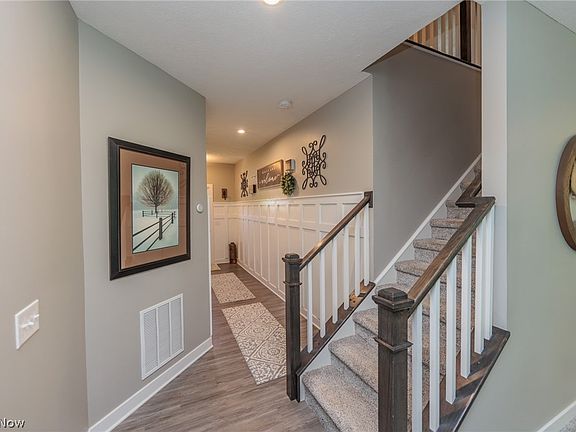 Beautiful 3 bedroom, 3.5 bath townhome with an attached 2 car garage situated in Brunswick's Enclave At Autumn Creek community! Enjoy low maintenance living in this bright & spacious end-unit townhome! The inviting entry is graced with custom Board and Batten(2022) and takes you to the open concept main floor that features a cozy yet spacious living room, eat-in kitchen with tall white cabinetry, center island with seating, granite countertops, pantry, stainless steel appliances & dining area with access to the backyard, offering a nice new patio(2021) to enjoy w/ lovely wooded views. A convenient half bath completes the main level. 3 comfortable bedrooms, laundry room & 2 full bathrooms are found upstairs; showcasing the owner's suite with 2 walk in closets & a private bath providing a double sink vanity & walk-in shower w/ dual shower heads. More living space is found in the finished lower level recreation room, plus a newly finished bonus room(2023), perfect for a private office or guest room, a 3rd full bathroom & ample storage! Fresh paint(2022) & upgraded carpet throughout(2021). The Enclave at Autumn Creek is conveniently close to all of the amenities & quick highway access! A true, must see home!
