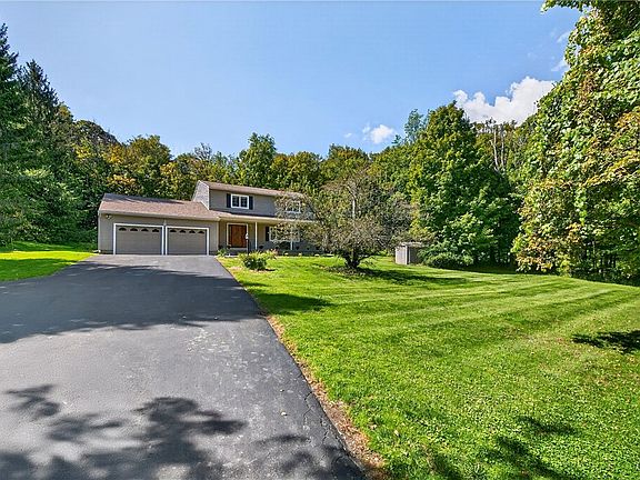 Charming Colonial on Nearly 3 Acres with Barn Near Pratts Falls. Welcome to this beautifully maintained 3-bedroom, 2.5-bath colonial, nestled on just under 3 private acres and located minutes from scenic Pratts Falls. This inviting home blends classic charm with modern updates and offers something for everyone—including a two-story barn with horse stalls and a covered rear area, perfect for hobbyists, equestrians, or extra storage. Step inside from the covered front porch into a welcoming foyer that leads to a formal living room and elegant dining area—ideal for entertaining. The remodeled kitchen is the heart of the home, featuring granite countertops, a massive center island, and ample space for gatherings. Adjacent is a cozy family room with a fireplace, perfect for relaxing evenings. Upstairs, you'll find three generously sized bedrooms and two full baths, including a primary suite with plenty of natural light. The full, unfinished basement offers endless potential—whether you need extra storage or dream of creating a home gym, workshop, or bonus living space. An attached two-car garage adds convenience, while the expansive yard and barn provide opportunities for recreation, animals, or outdoor projects. Don’t miss your chance to own a slice of peaceful country living with easy access to nature, just a short drive from town amenities. NOTE: The birds name is Bonkers - DO NOT TOUCH - SHE WILL BITE! OFFER DEADLINE SATURDAY 9/13 AT 6PM