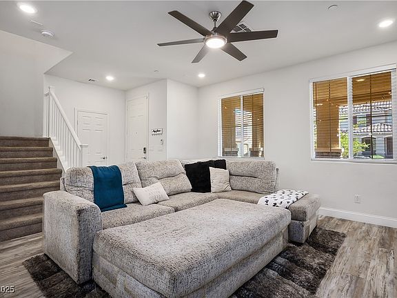 Welcome to 3177 McKenna Dawn Avenue, a 2019 townhome in the Inspirada master-planned community of Henderson. This two-story home offers 1,842 sq ft with 3 bedrooms, 2.5 baths, a loft, and 2-car garage. The open-concept main level features tile and laminate flooring for a modern, low-maintenance flow. The kitchen offers granite counters, breakfast bar, gas range, and ample cabinetry, connecting seamlessly to the great room. A water softener and tankless water heater add comfort and efficiency. Upstairs, the primary suite includes a walk-in closet and dual-vanity bath. Two additional bedrooms, a loft, and a full bath complete the upper level. Natural light fills every room, with tasteful finishes inside and easy-care desert landscaping outside. Inspirada amenities include parks, trails, pools, green space, and access to shopping, schools, and commuter routes. This home combines comfort, efficiency, and style in one of Henderson’s most desirable neighborhoods.