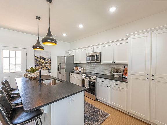Dedicated laundry areaOpen-concept layoutStylish kitchenStainless steel appliancesTiled backsplash