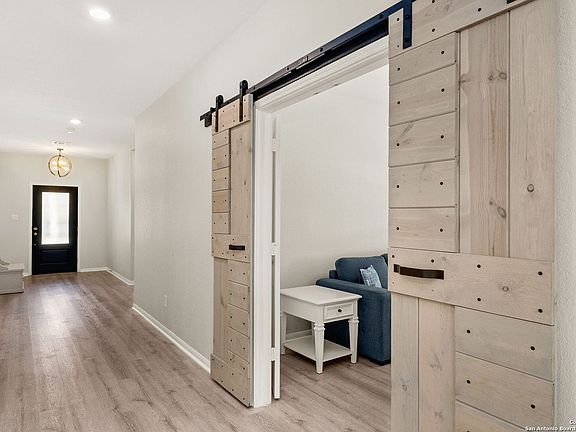 Welcome to your dream home nestled in the serene surroundings of Bulverde, TX! This lovely property in in the Hidden Trails community boasts 4 bedrooms and 3 full bathrooms, all within a spacious 2,359 square feet of thoughtfully designed living space. The open-concept floor plan is both functional and inviting, perfect for modern living and entertaining. The kitchen is a chef's delight, featuring sleek quartz countertops, large island and a generous walk in pantry. Natural light floods the open space, creating a warm and inviting atmosphere for gatherings with friends and family. Relax and unwind in the cozy living area or take advantage of the versatile flex room, which can be transformed into an additional living area, office, media room, or exercise space to fit your lifestyle needs. Step outside onto the delightful back porch deck where you can enjoy breathtaking views of the Hill Country and the tranquility of the greenbelt that borders the property. It's the perfect spot for morning coffees or evening stargazing. The 3 car garage provides ample space for your vehicles and plenty of storage. As part of the Hidden Trails resort style community you will enjoy a brand new Junior Olympic sized lap pool, kid's splash pad, stunning infinity pool, 24/7 well-equipped fitness center (with group classes), stocked fishing pond, dog friendly park, multiple playgrounds, zip line and plenty of walking trails. Enjoy time with your neighbors listening to live music, and food trucks hosted by the community center. This home combines comfort, style, and a prime location-making it a perfect choice for anyone looking to experience the Hill Country lifestyle. Don't miss out on this exceptional property! Schedule your showing today!